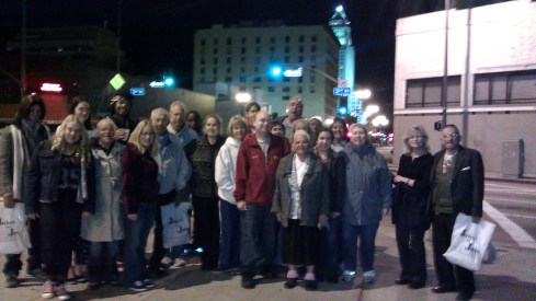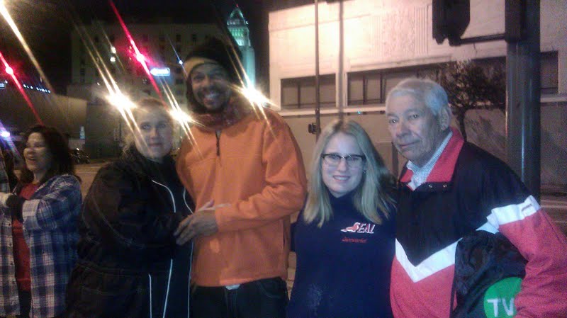 Evelyn, leading the food table this week with Jodi taking time with her husband Chuck, had been next to a shouting man all evening. I approached him when he was shouting in the middle of the street, imploring him to step out of harms way. Jumping deeper into traffic, throwing down his plate of food, he glared at me and the fount of anger only grew. Evelyn had the answer. After listening to another night of garbage from our sick friend- she approached him, told him how much she cared and asked for a hug -dumbstruck, he wandered silently into the night.